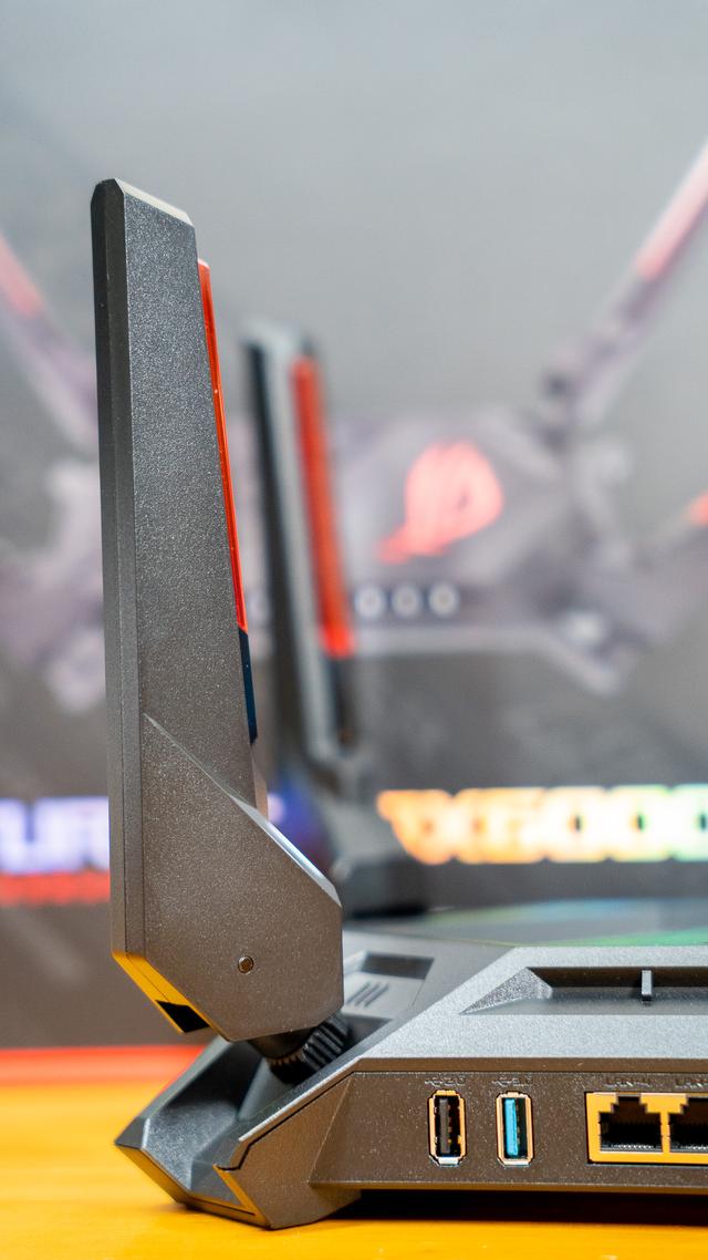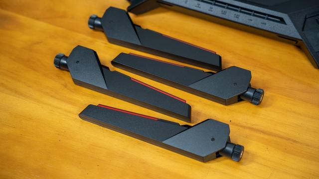 “红蜘蛛”的GT-AX6000的四根天线是我见过造型最夸张,体型最大的四根天线了。搭配博通新一代 RangeBoost+ 技术,不仅能智能识别干扰,还可以使得 Wi-Fi 覆盖率提升 38% 。