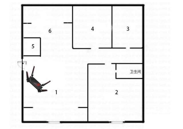 信号强度方面,测试环境依旧是我目前居住的房子,三室两厅两卫,120平左右。大概房间示意图如下,房间结构比例与下图类似。