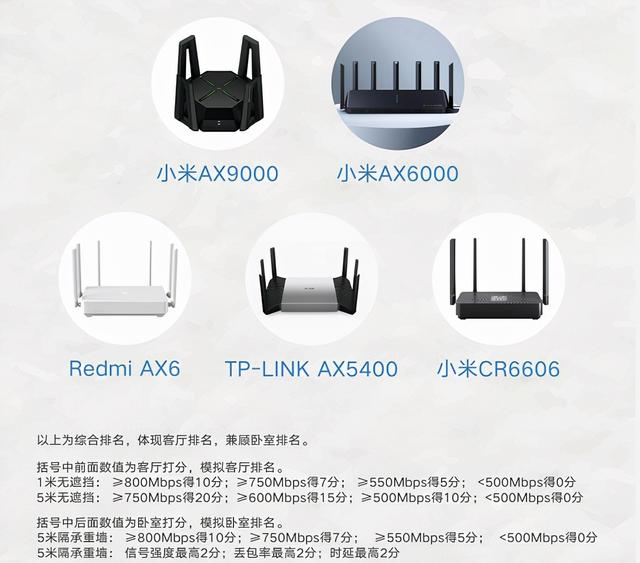 同样将这些路由器放置在卧室,有墙体间隔环境下时,小米R3600、小米AX6000、小米AX3600比TP-LINK AX6000、华硕RT-AX82U表现更好。450元以下的路由器中测评中,Redmi AX6一枝独秀远超其他同类产品。