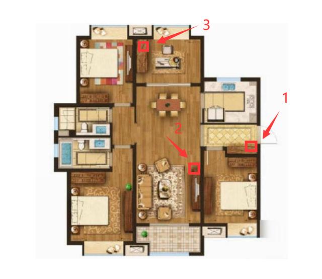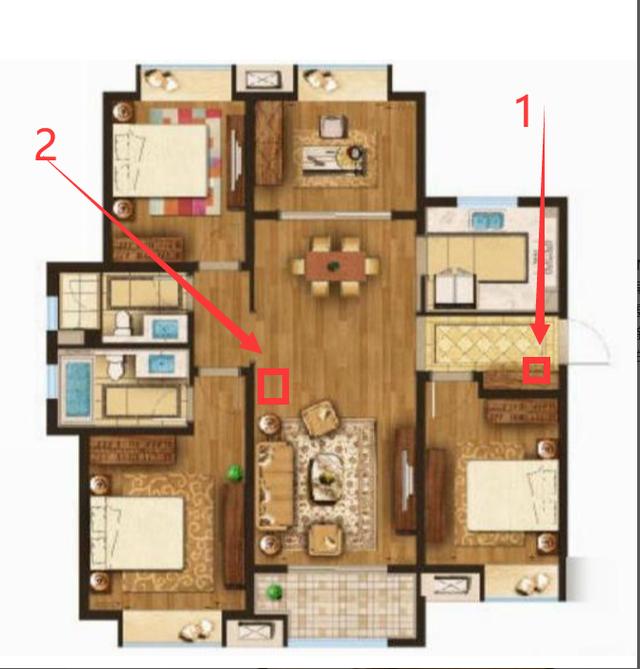 我家里的光猫在1位置, 1位置是一个鞋柜, 网络箱放置在鞋柜里面, 在装修的时候, 我在每个房间都有埋线, 埋线的网口是千兆网口。