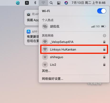 在Mac操作系统环境下,连接到Linksys领势 无线路由器。