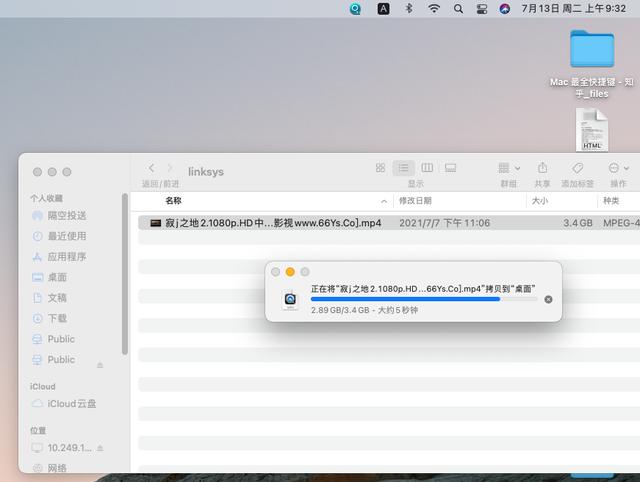 在Mac操作系统环境下, 无线内网网络文件复制到Nas, 速度也是千兆网络速度。
