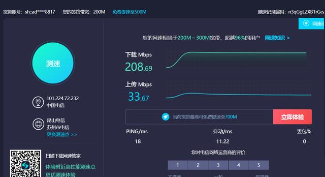 在Windows环境下,我使用无线测速 WiFi6连接互联网速度, 使用的是Intel AX200网卡, WiFi6带宽和无线网卡带宽都是千兆, 使用200M的网速是没有问题的。