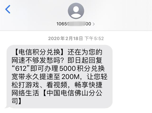 看到这个短信,我毫不犹豫地回复了“612”,花了5000大洋(积分)办理了宽带永久提升至200M的优惠。