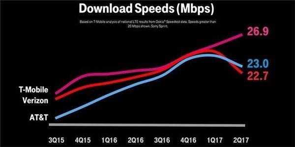 尽管Verizon没有对外公布,但根据OpenSignal和Ookla两家测速公司的数据显示。Verizon的4G网络在推出无限流量套餐后的半年里呈现不断恶化的趋势,当前的高峰期平均网速只有推出无限流量套餐前的3/4。AT&T的4G网络质量也在今年2月推出无限流量套餐之后略有下滑,只有原本信号差、用户少、推出无限流量套餐比较早的T-Mobile没有明显的质量下滑。