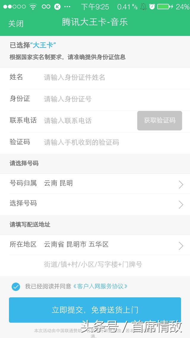 接下来就是申请大王卡的最后一部,填写一下你的个人信息,基本百分之百都能申请成功的。