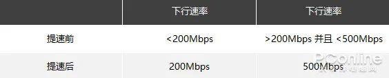 此次中国电信的宽带提速总共分为两个等级,如果你的带宽低于200M,则免费提速至200M,如果是在200M至500M之间,则免费提速至500M。简单来说,就是直接给你的宽带“升”一级!