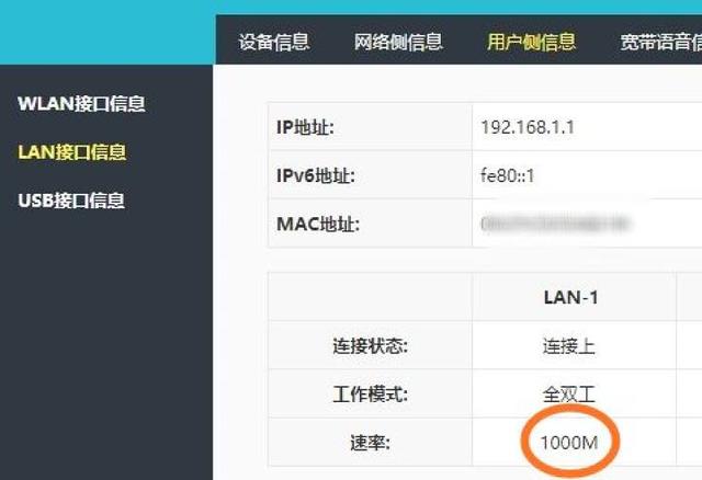 另外也可通过光猫管理页LAN连接信息查看,如下图所示。