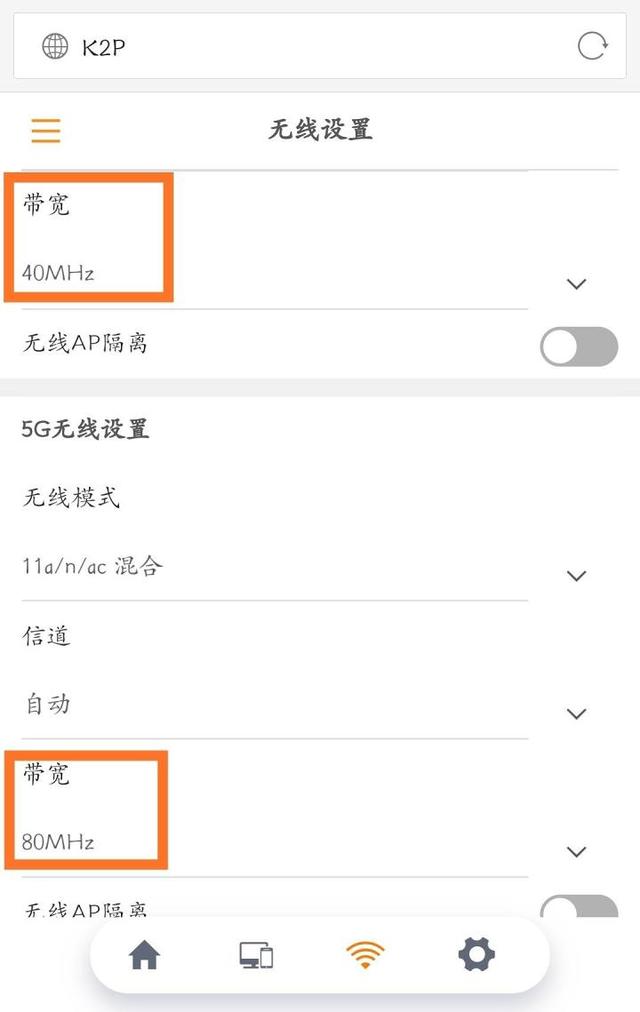 另外,还可通过调节WiFi频段带宽提速,进入光猫后台管理页,2.4G WiFi带宽设置为40MHz,5G WiFi带宽设置为80MHz。