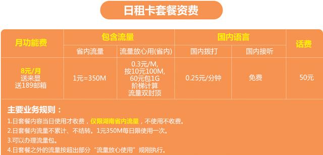 具体来说,对于中国电信的这款超级日租卡,月租8元。值得注意的是,对于中国联通、中国移动此前推出的日租卡,月租最高的只有8元,低的话有5元、6元等。换而言之,对于电信的这款日租卡,月租上不具有竞争优势。在此基础上,该套餐1元包含350MB的省内流量,并且1元350M每日仅限使用一次,不可累积和结转。在350M之后,省内流量按10元100M、60元包1G计费。