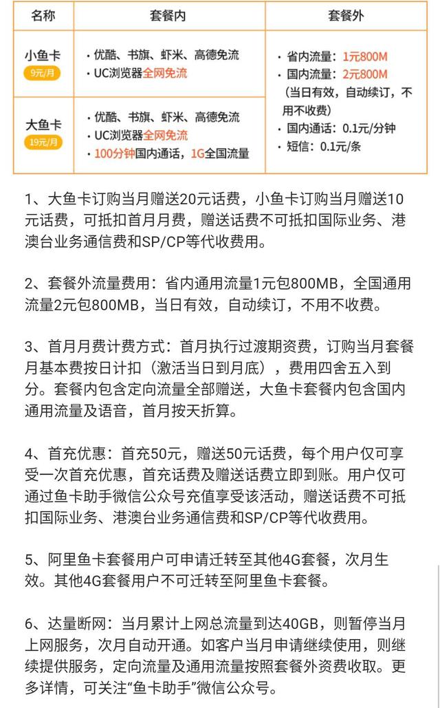 基础月租6元/月,保号可用,1元/800m,顶峰30g,每天使用算下来一个月也就37左右哦!