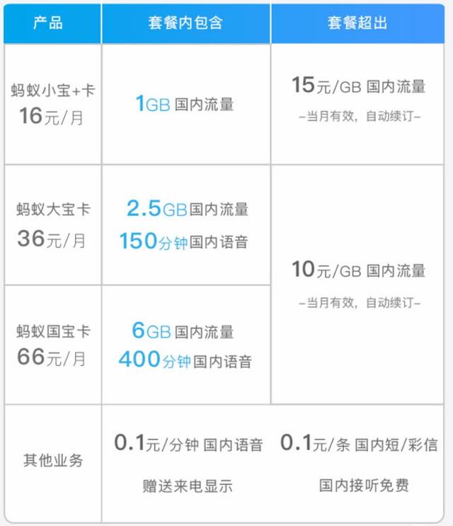 2016年11月24日,支付宝与中国联通宣布达成战略合作,双方将打通用户体系并联合推出手机号码品牌"蚂蚁宝卡",支付宝上的新老联通用户将获得手机流量赠送、专属套餐、专属靓号等优惠。蚂蚁宝卡也引入了芝麻信用,用户在使用过程中的按时履约行为将有助于改善信用。