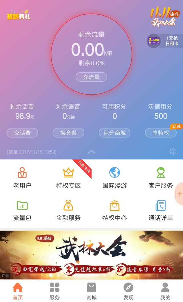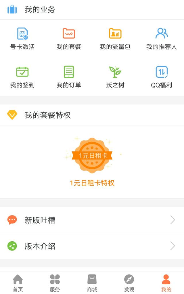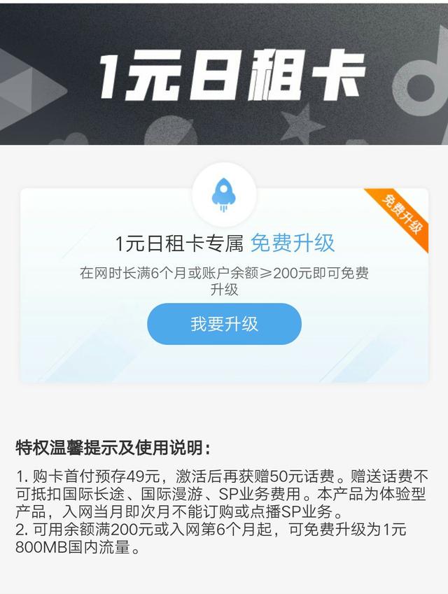 想要升级为全国流量的童鞋们可以在联通“手机营业厅”→我的→1元日租卡特权进行升级