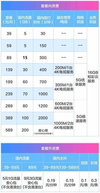 中国移动资费截图