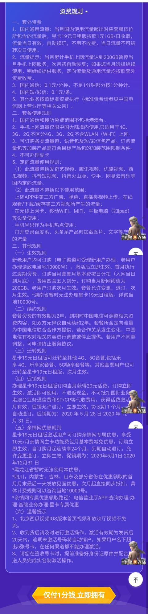 首先别的不说,星卡这个软件分为两个版本,一个是普通版,一个是美团版,普通版只包含200g定向流量,其他就什么都没有了,然后就是我打客服告知说这款套餐的定向流量也只送12个月,也就是12个月过去了,就没有定向流量了,里面就啥也没有,用流量也就1元1g1天来收费的,除了坑真的没别的话了,下面是使用规则,想要了解的可以看看,不过没有找到全部的免流软件。