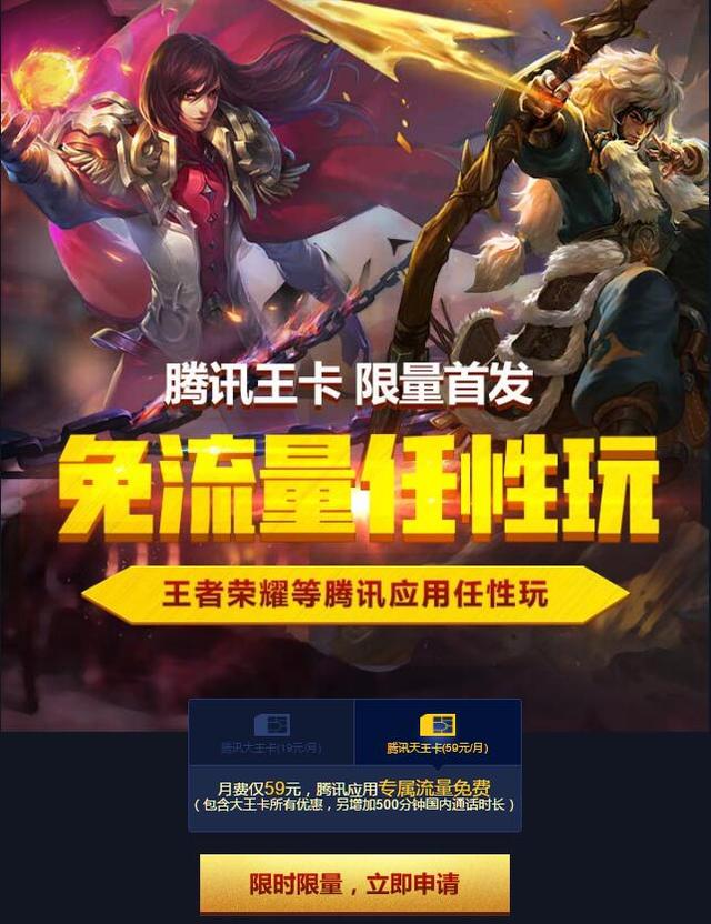 今天,腾讯又推出了腾讯天王卡套餐,月租费 59 元,腾讯应用专属流量免费,腾讯天王卡包含大王卡所有优惠,另外还增加了 500 分钟的国内通话时长,目前是限量首发。