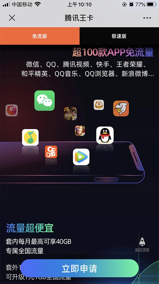 腾讯王卡流量套餐相关合同条款描述为 :“当月套餐上网流量累积使用达40GB时,系统将关闭上网功能”。按照字面理解,当套餐流量累积使用达40GB时,系统才关闭上网功能。