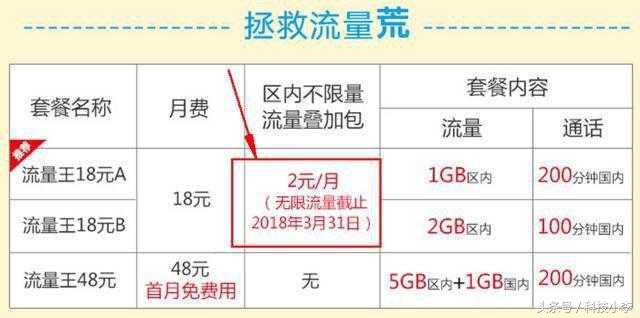 联通流量王卡共分为三种,流量王18元A月租为18元,套餐内包含1G省内流量+200分钟全国通话;流量王18元B月租为18元,套餐内包含2G省内流量+100分钟全国通话,此外目前两者均支持不限量流量叠加包服务,2月/月便可享受无限流量,不过无限流量截止日期到3月31日。
