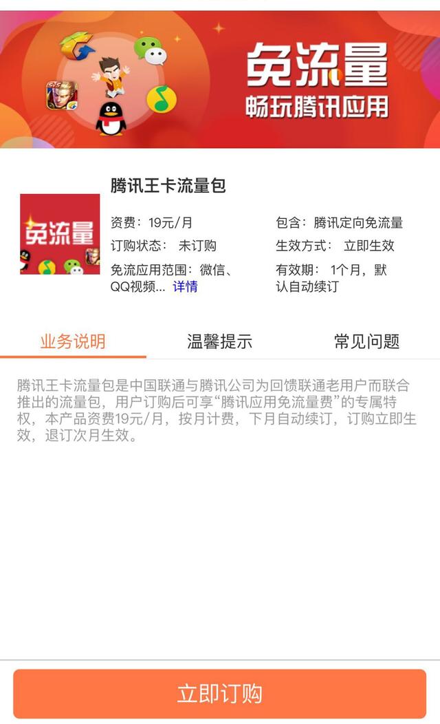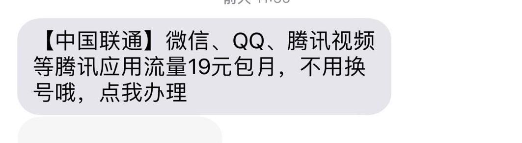 近日小编接收到联通短信通知,针对老用户专门推出了19元/月的腾讯王卡流量包,不用换号,不用换套餐。