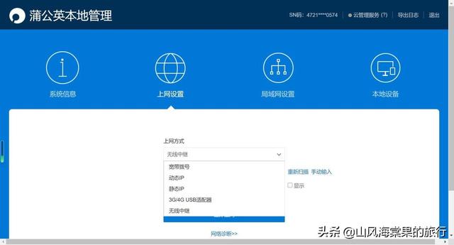 入网方式也比较丰富,可以是有线网络、2.4GWiFi、3G/4G无线网卡甚至是无线中继,有这个功能是我没想到的,比较适合我这样的家庭用户。