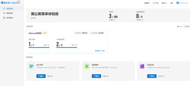 不过首次注册账号还有30天的蒲公英尊享体验版,此时使用成员升级为200个,服务端成员升级为5个。