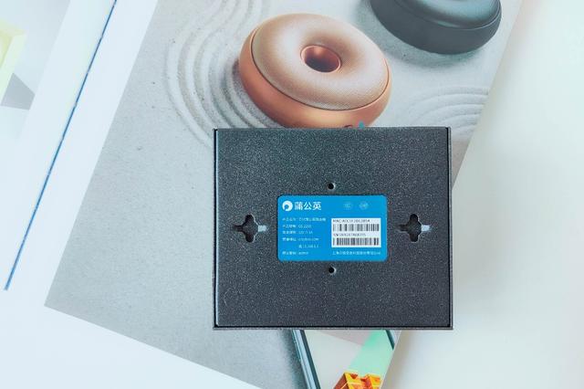 路由壳体为全金属材质,所以拿在手里沉甸甸,从心理层面给人一种比较有料的感受。配色上整体灰黑色,但是整体布满有白色的颗粒,在某种程度上增加了产品的立体感。路由顶部有一个压印的蒲公英Logo。从颜值上来说,蒲公英G5并不能算是出众,只能是中规中矩,但回想下一个常年不见光呆在多媒体箱的物件设计的再好看又能怎样呢?徒增成本;而金属材质才保证了足够的散热,保证了产品的稳定性。