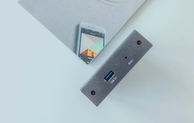 而在蒲公英G5的一侧还设有一个USB 3.0接口,正是因为有这个USB 3.0接口便可以实现一键搭建个人云盘;在没有宽带的时候,还能利用3G/4G上网卡实现临时办公,接入打印机共享云打印等功能;USB 3.0接口的旁边则是重启按钮。
