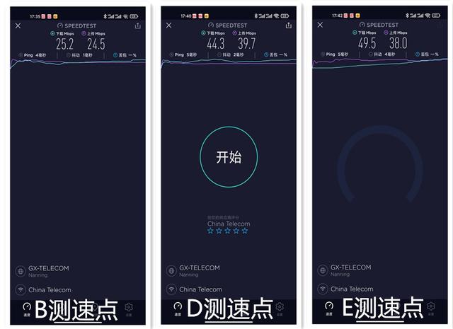 联网测速方面,B测试点、D测试点和E测试点的测值结果也很不错,日常联网乃至在线追剧基本也不用缓冲。
