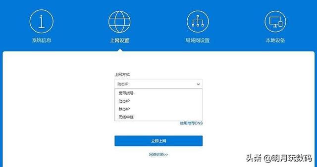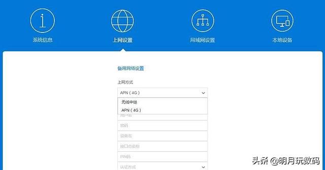 开篇的时候就提到过,蒲公英4G无线路由器支持多种上网方式。如果使用的场合有网络,可以根据情况来选择动态或静态IP方式上网,也可以直接使用无线中继功能。如果要使用流量卡上网时,选择APN(4G)方式就可以了。
