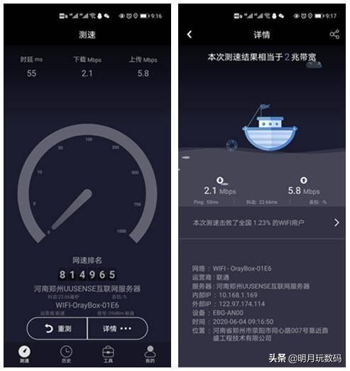 在使用4G网络上网时,可能是因为房间信号不太好,测试的结果并不理想。下载速率仅有2Mbps,而上传速度达到了5.8Mbps。这个速度,对于日常浏览网页或以聊天刷微博倒是影响不大,不过,玩一些大型网络游戏啥得,还是建议使用其它方式。