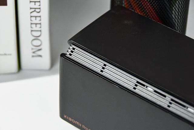 小米路由器AX3000有着非常标志性的“X”形状,将方形的路由器进行了一个分割,视觉上更具科技感。在长方体的棱角部位前方靠下的位置设置了运行指示灯,后方则是网线接口和电源插口的设计。整机的外壳是采用了卡扣将外壳与中框进行固定的,可以顺着X的顶部撬开,整个路由的内部使用了塔式散热架构,立式内部有着较大的空间形成大通道对流,配合大尺寸金属散热片,为整机提供了很不错的散热性,为路由实现稳定运行状态提供了保障。