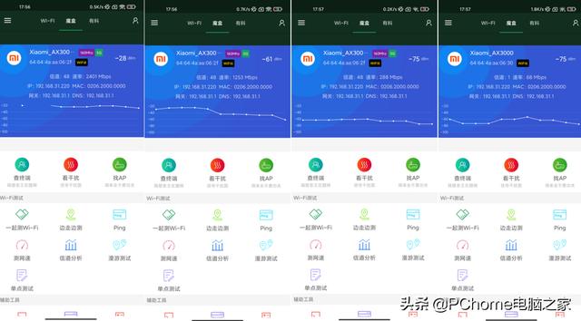 在信号方面,小米路由器AX3000内置四天线与四路独立信号放大器,其中2.4G频段采用两组PA+LNA,5G频段采用两组 PA+LNA,官方介绍信号强度提升4dB,理论覆盖范围强度提升50%。在实际体验下来,小米路由器AX3000在距离路由器较远的地方也能接收到微弱信号,当有墙的阻隔就会削减一些信号,小米路由器AX3000的PA(功率放大器)可以有效增强信号发射功率,发射的信号传输更远,让信号穿墙更强。