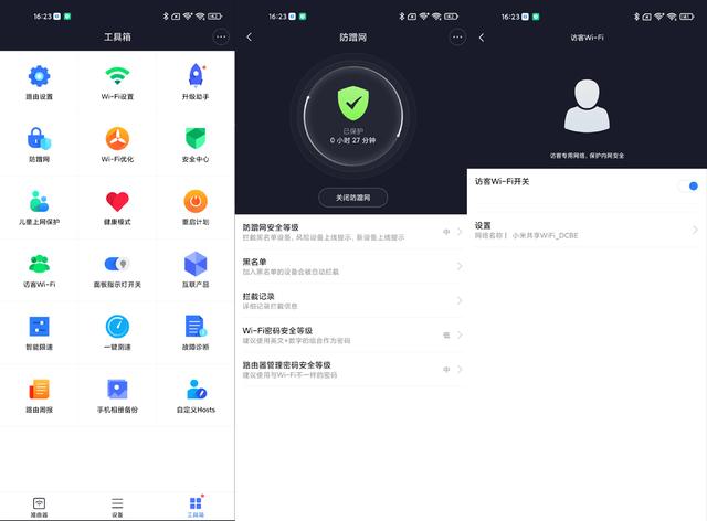 小米路由器AX6000的相关设置也是较为简单,首先在小米WiFi APP中还可以对小米路由器AX6000进行设置,比如防蹭网、儿童上网保护、访客WiFi等等,还是非常方便的。