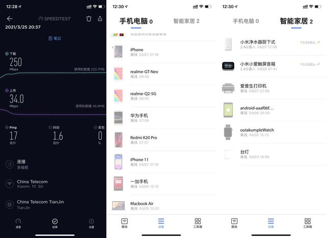 由于我数码产品比较多,家里也有好多智能家居的产品,所以非常考验多设备连接的考验,首先我家用的是电信的200M的宽带,从之前的路由器换成小米路由器AX6000路由器之后,家里整体的上网质量用三个字形容,“杠杠的”。这是我感受最深的一个点。这款路由器对于我们家三居室这样的大面积来说,上网速度居然毫不逊色。