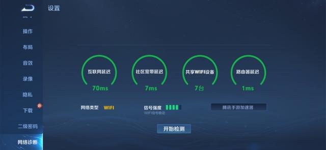测试点3也就是主卧的位置,虽然评分有所下降,但毕竟是2.4GHz,穿墙能力还是不错的,各项数据也还算在正常范围内,网页和视频同样比较流畅。我在卧室也打开王者荣耀的测速看了下,数据依然不错。