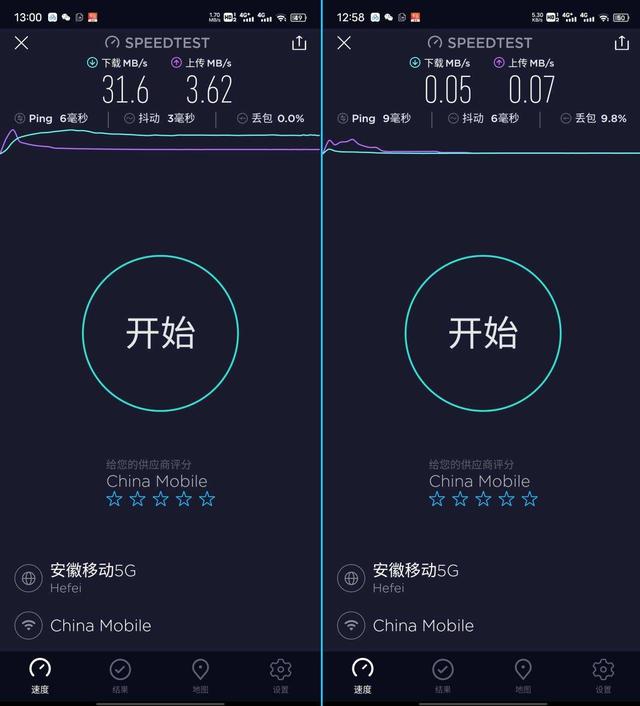 接着我测试了我家楼下停车位的wifi信号,实际测得2.4G频段下载为0.05MB/s,上传0.07MB/s;5G频段下下载为31.6MB/s,上传3.62MB/s,这两个频段的速度让我惊讶。