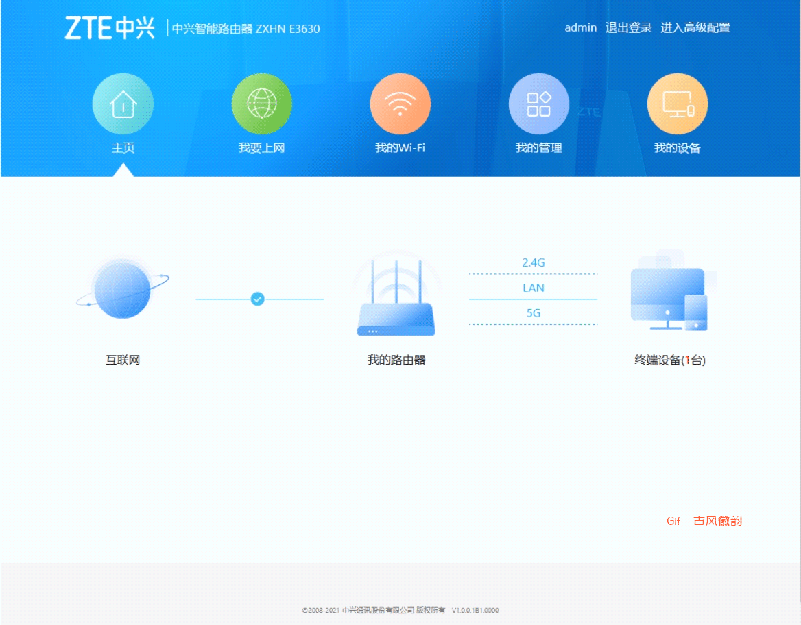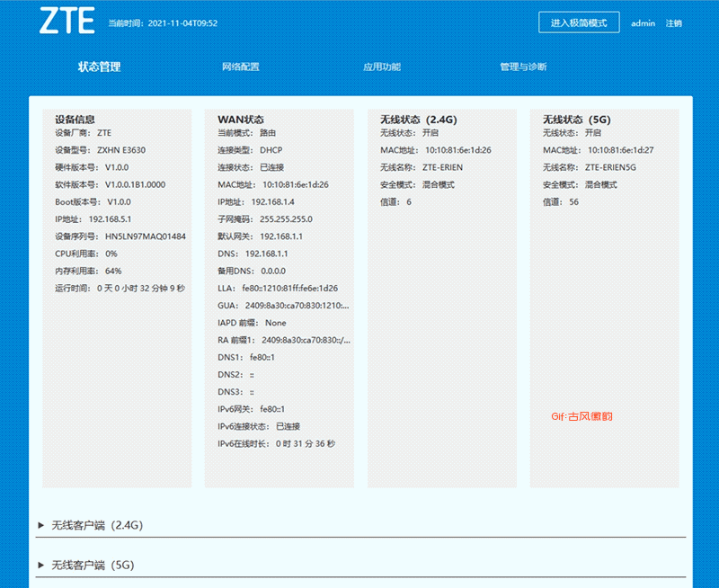 中兴AX5400 Pro路由器的后台设置有基础配置和高级配置,对于大多数用户来说,基础配置里就可以进行设置wifi用户名密码,升级重启,进入MESH配置等等。
