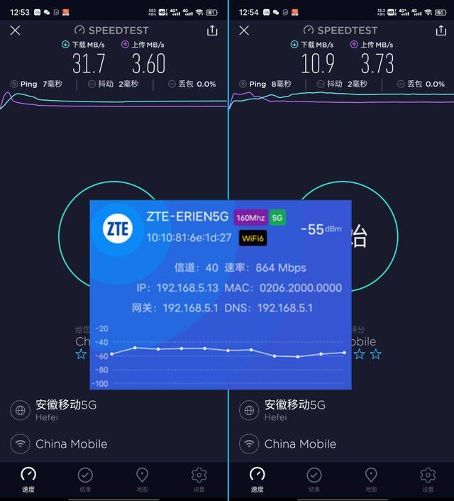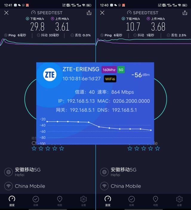 从以上测试看,中兴AX5400 Pro路由器的速度表现不错,下载基本跑满200M的带宽,特别是5G频段,上传基本保持在3.6MB/s以上,5G下的160MHz的无线宽频确实比2.4G的最大40MHz宽频效果方面要好很多,关键是即使是5G,它的传输距离也是非常强大,一般的日常使用下,感觉直接连接5G频段就可以了。