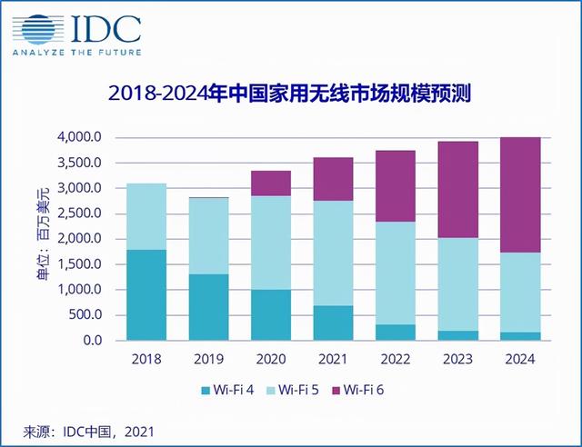 这几年,网上办公、在家网课的刚需不断加深,这也使得Wi-Fi 6路由器的出货量不断增长。据IDC预测就看得出,中国市场在2024年Wi-Fi 6产品将超过200亿元规模,是一个具有庞大市场的“大蛋糕”。