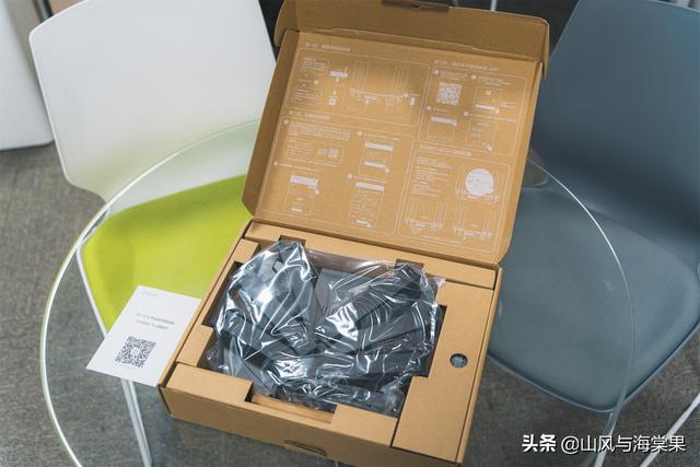 打开包装盒盖子上是安装说明,可以根据说明一步步进行安装操作。包装里的路由器镶嵌在包装里,比较牢固。面还有网线、电源适配器、说明书等配件。