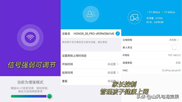 比如其中的防蹭网,可以设置黑名单,防止邻居或者其他的人进入系统,WiFi定时可以在晚上睡觉时提前定好,避免熬夜忘记时间。另外,信号强度也可以调节,比如朋友怀孕来家里做客就会设置比较弱的信号,防止产生辐射。每一项设置都是非常人性化、非常实用的。