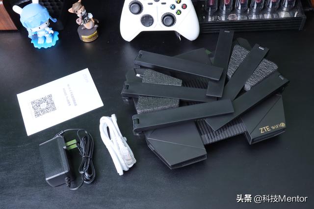 包装内部的物品也很简单,除了路由器主体以外,还有一个电源适配器,一根千兆网线以及一本说明书。这里必须给中兴点个赞,因为很多路由器并不赠送网线,使用时需要单独购买。无疑这对消费者来说很不友好,如果自己没准备充足,便会耽误路由器的安装。