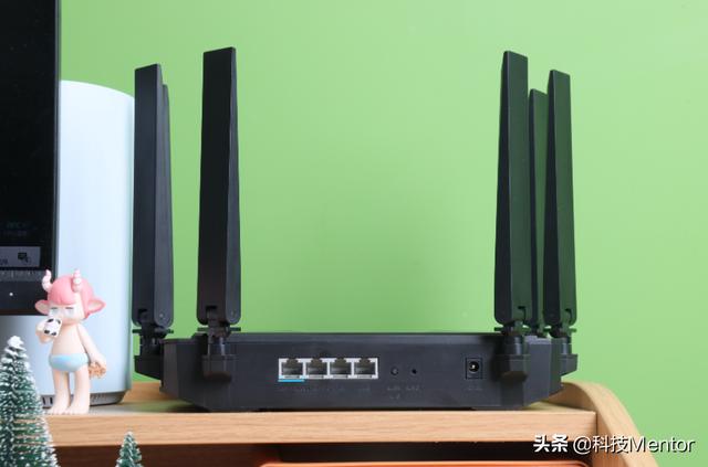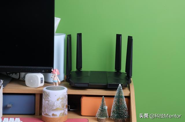 路由器作为一款上网工具,颜值也颇为重要,只有高颜值的路由器摆在桌面才会更炫酷。中兴AX5400 Pro机身采用神秘黑配色,并且以飞船为设计理念,整体造型棱角分明较为硬汉,同时在视觉上还能够给我们带来一种神秘且科幻的感觉,将路由器放在电脑桌面上不仅不突兀,还会增加桌面的美观度。