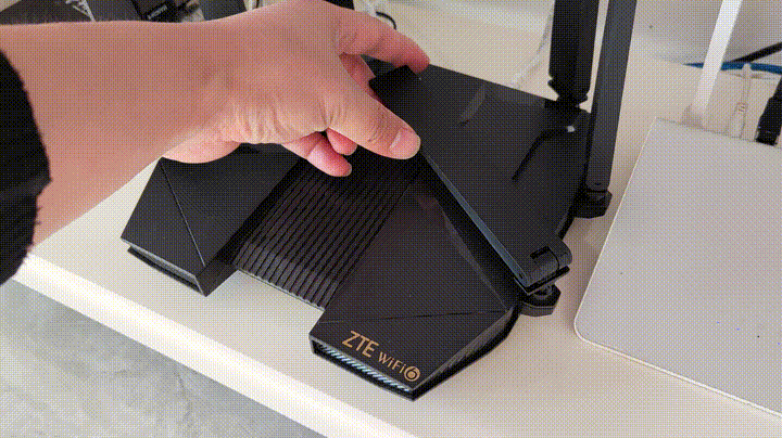 为了让中兴AX5400 Pro路由器拥有更好的散热,它的侧边和底部设计了大量镂空散热格栅。为它强悍的配置而设计,增加了性能方面的更好表现。