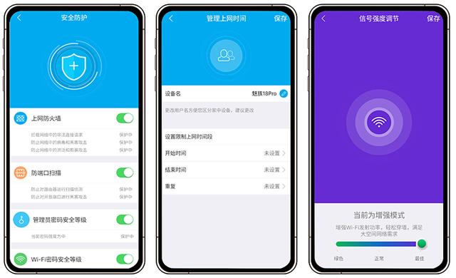 其中以下几个功能个人觉得很不错,“安全防护”可以让我们路由器确保安全性,防止对开放端口进行黑客攻击以及WIFI被恶意破解、蹭网等情况。“父母监控”功能则可以对家中孩子的上网时间进行限制,以免过度沉迷网络,从而达到合理健康的上网。而“网络优化”功能除了可以一键自动优化提升无线网络外,还可以进行信号强度的调节。有绿色、正常、最佳三档位,可以根据家中户型面积需求进行自由调节。