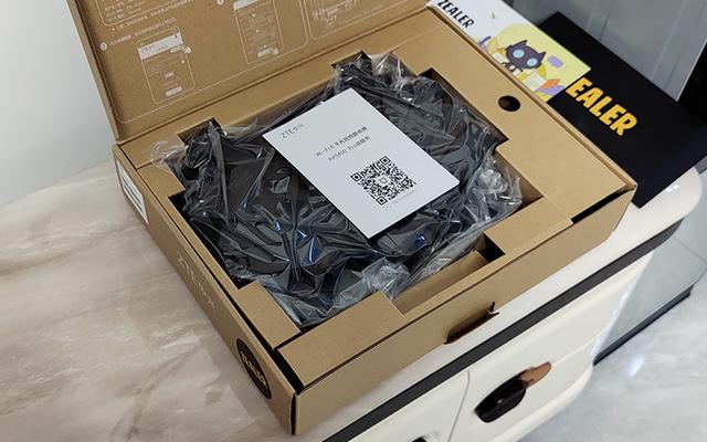 迫不及待打开包装盒,可以看到盒内中兴AX5400 Pro路由器外部裹着塑料袋,体积方面相对普通路由来说,还是真是个庞然大物。在最上层放置着产品说明书,侧面则是配件。包装盒盖内侧,还贴心地印有配网和组网的详细操作说明。