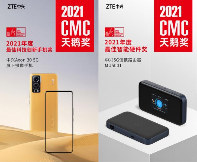 近日,在“共赢5G时代创新智能未来”2021中国5G终端全球创新峰会(第三届)暨第九届手机设计大赛天鹅奖正式颁布,中兴的两款产品中兴Axon 305G屏下摄像手机与5G便携路由器MU5001分别斩获2021年度最佳科技创新手机奖和2021年度最佳智能硬件奖,年末迎来“双喜临门”。