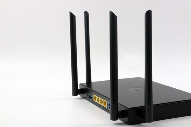 路由器靠后方外置有4根5dBi双频高增益全向天线(4*4MIMO千兆WiFi标准),实现更强劲的无线信号,也大幅的提升信号覆盖范围和穿墙稳定性。