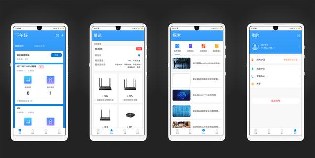 登录我们之前注册的账号,App界面分为管理、精选、探索、我的这四块: