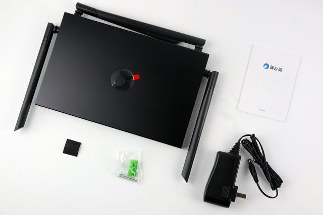 正上方仅有一个蒲公英的品牌Logo点缀了整个路由器,打破了原本沉闷的外观。